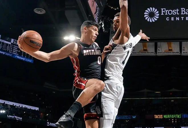 面对拥有阿德巴约、维金斯的热火队,文班亚马的发挥还是那般稳定,全场23中10拿到27分18篮板6助攻5盖帽1抢断的数据,帮助马刺队以六分的优势击败对手;同时,马刺队还打出了五连胜,暂时占据西部第二的位置。