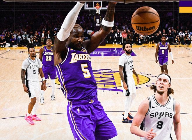 北京时间11月6日,NBA常规赛继续进行,西部一场强强对话,湖人主场对阵马刺。湖人此前战绩6胜2负,除了揭幕战输给勇士之外,之后7战6胜,球队势头正盛。马刺则在经历开局5连胜后,被太阳爆冷终结连胜纪录。湖人本赛季的崛起方式让人意外,詹姆斯长时间不打的情况下,东契奇场均41.3分11.5篮板8.3助攻+里夫斯场均31.1分5.1篮板9.3助攻,双核驱动能力太强了。上一场打开拓者,即便这两人都不在,艾顿29分+八村塁28分+尼克史密斯25分,角色球员也挑起大梁。不过本场比赛前,湖人连续迎来坏消息。