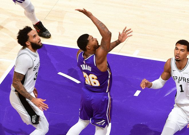 海斯和艾顿轮流上分,打停马刺。中段索汉轰进三分球,东契奇上篮+八村塁三分球追到只差2分。决胜时刻,东契奇和文班亚马轮流罚球,东契奇撤步三分球打破平衡,文班亚马被包夹只能给队友传球,但手感不好。此后文班亚马进攻犯规6犯离场,心态有些失衡,艾顿继续罚球,斯玛特两罚全中拉开4分分差后,奥利尼科上篮维持悬念。危急时刻,斯马特踩线发球给马刺最后一攻机会,拉拉维亚推人犯规,尚帕尼第一罚打铁,最终湖人118-116惊险击败马刺。