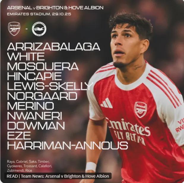 打入一球,恩瓦内里当选与布莱顿一役阿森纳队内最佳球员
